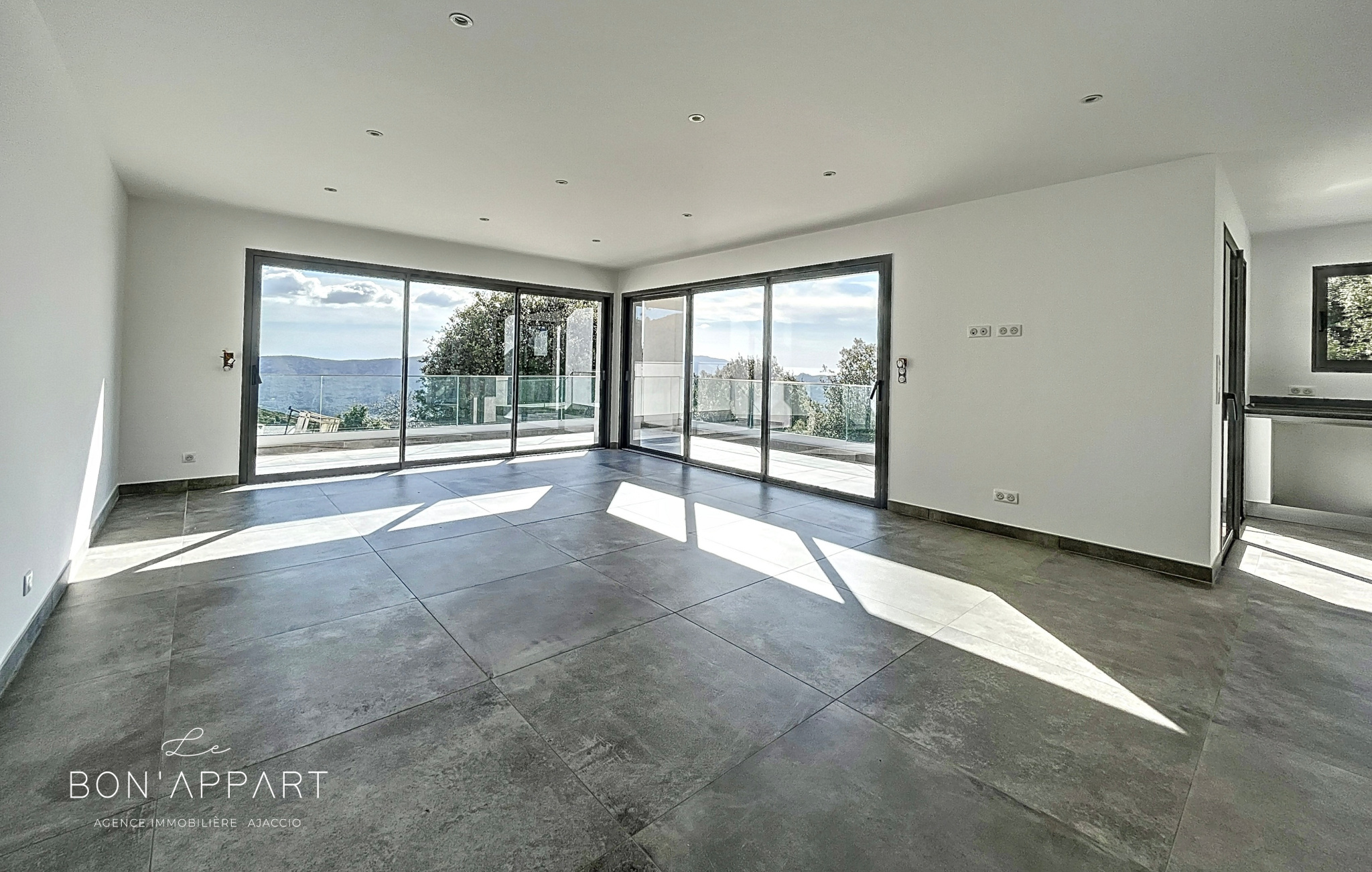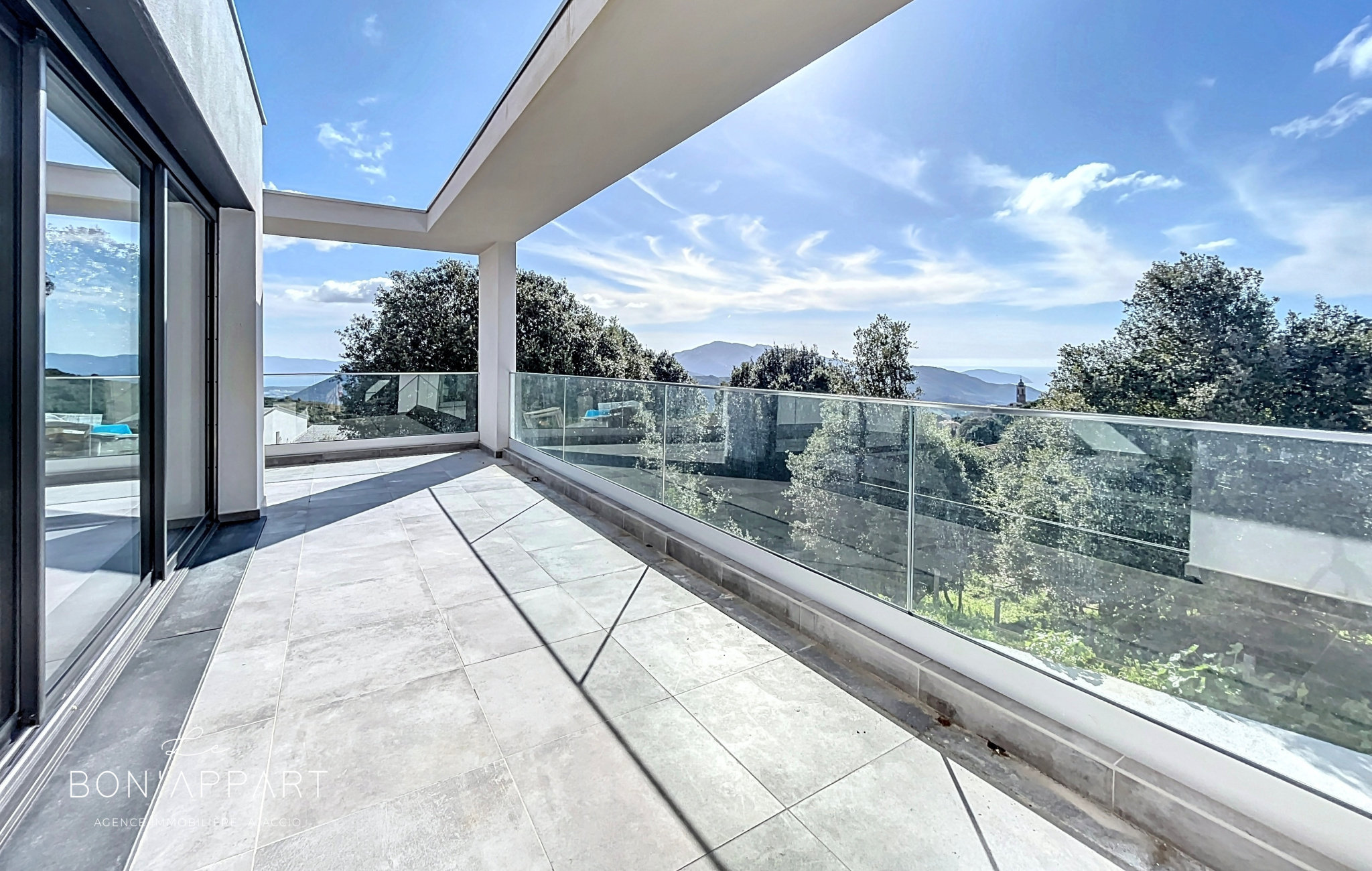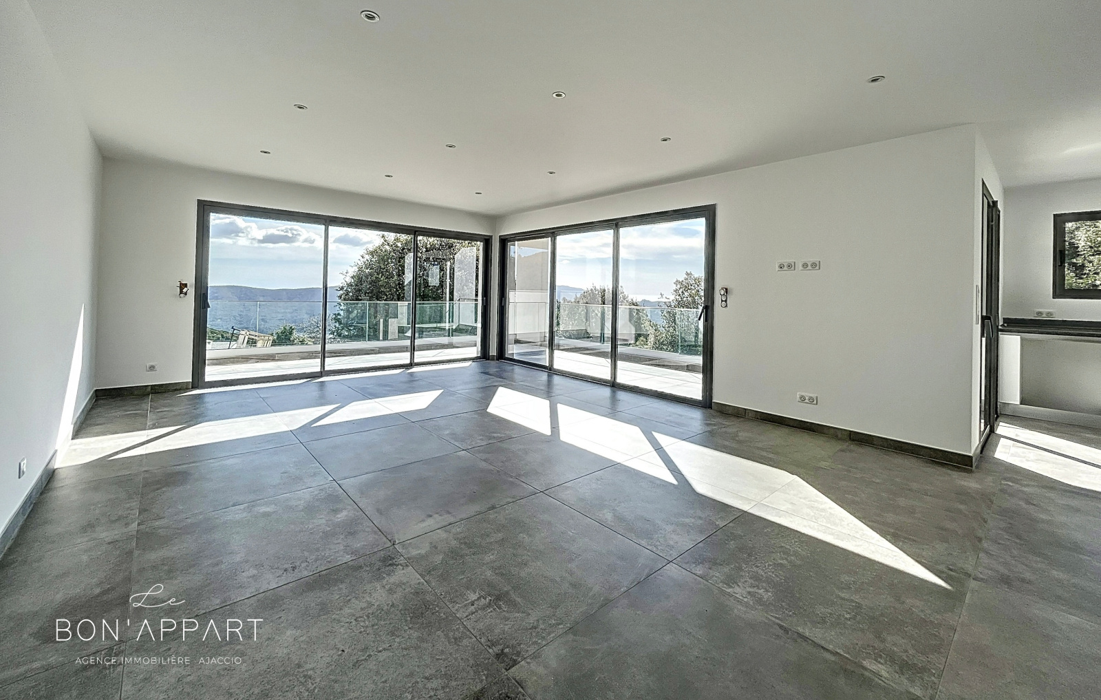 Appietto (20167)L'agence Le Bon'Appart vous propose à la location, à 15 minutes d'Ajaccio, sur la commune d'Appietto, une villa de standing vue mer de 115 m².