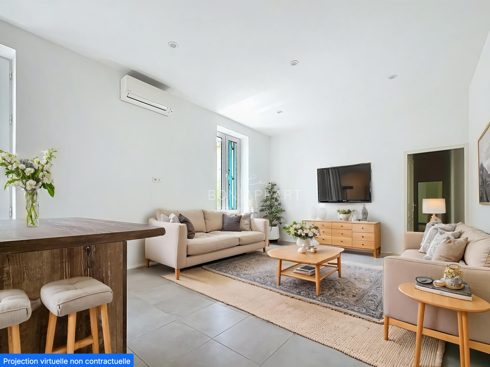 cet appartement est doté de belles prestations: double vitrage, volets aluminium, climatisation, cuisine entiérement équipée,
